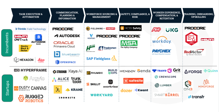 Construction jobsite issues arise upstream and downstream, where multiple stakeholders interact and where workflows depend on each other. While individual task-level tools are valuable, we believe that the greatest opportunities for founders building new solutions for the construction industry lie where solutions help the worker and reduce system-level coordination drag. These are the areas where small improvements cascade, value becomes easier to quantify, and adoption accelerates because benefits are visible at both the field and the executive level.
